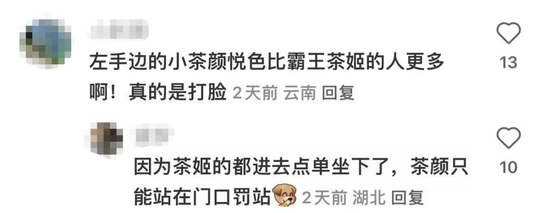 但也有人说出了另一种可能性,那就是茶颜的顾客在“罚站”,茶姬的顾客在座位上手机下单了。