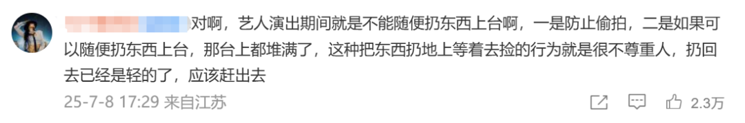 不少国际歌手均曾因安全原因公开拒绝台上物品,多数大型演唱会安保手册都会将“禁止抛物”列为基本准则。