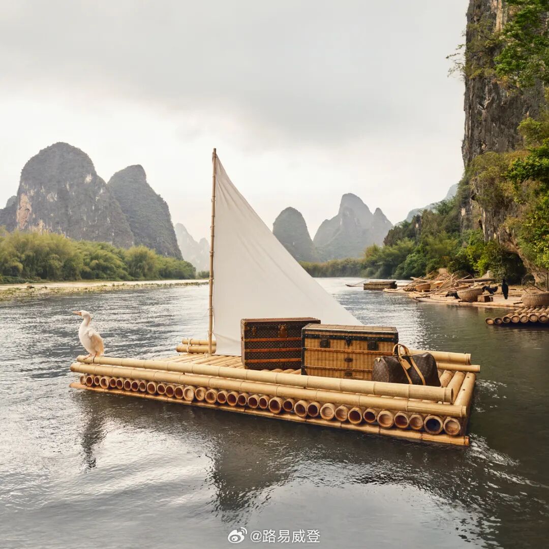 LV以“旅行的真谛”为主题,以广西桂林漓江、湖南张家界、山西大同悬空寺三处秘境为舞台,通过摄影、红毯、线下装置等多维度传播,将旅行升华为一场跨越时空的精神探索。