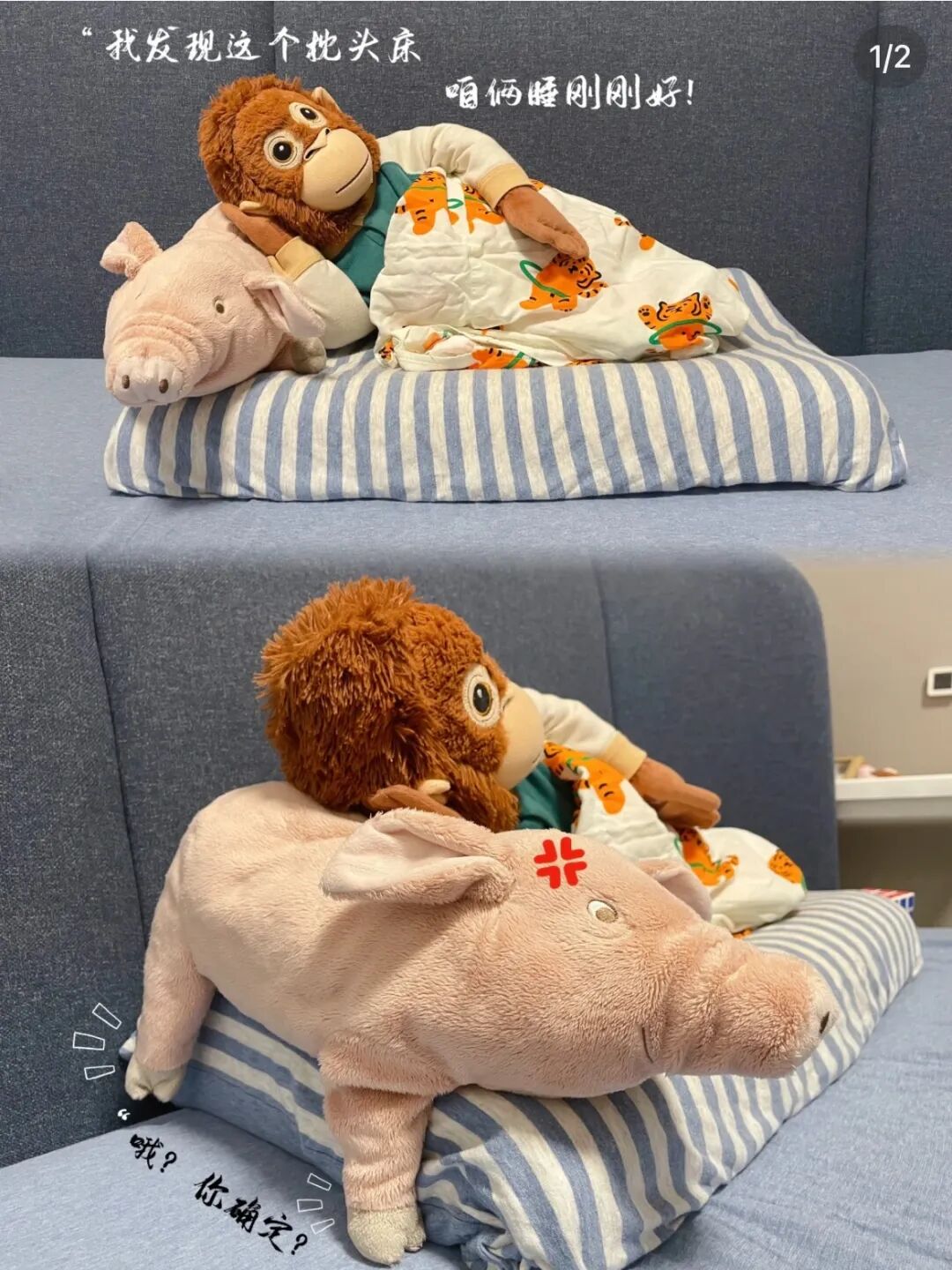 “我发现这个枕头床,咱俩睡刚刚好!”