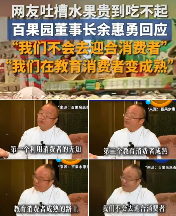 他在回应“水果太贵”时直言:“百果园这么多年来都走在一个教育消费者成熟的路上,我们不会去迎合消费者......”