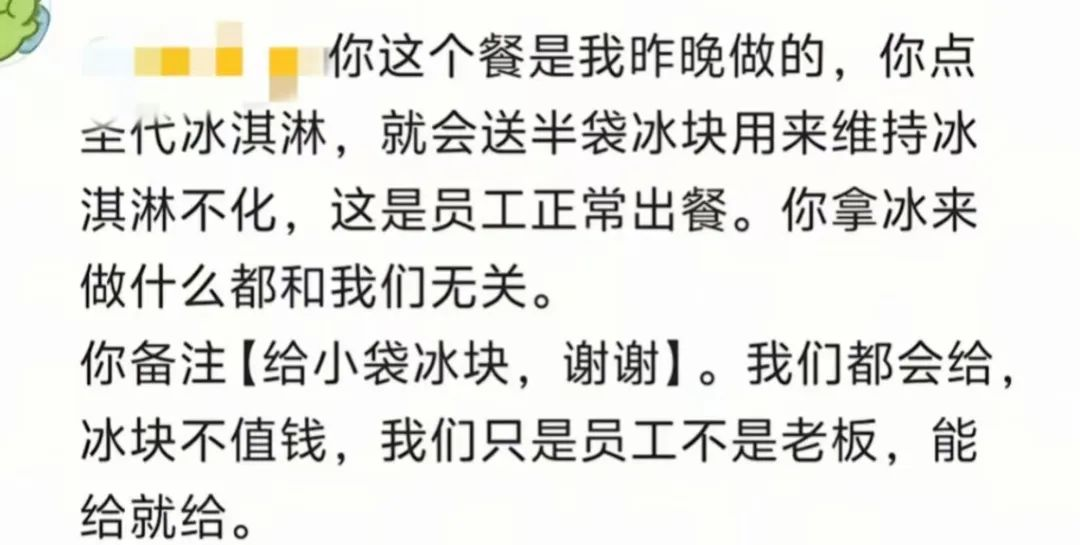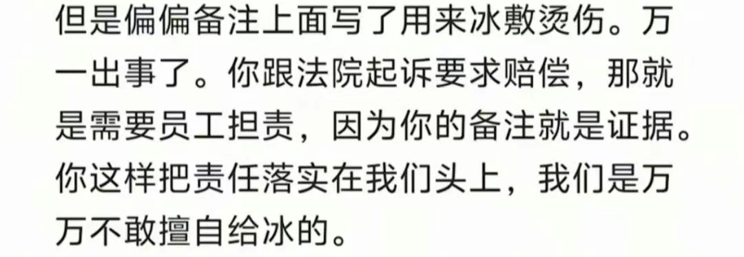 没想到店员现身说法,硬核回应解释不给冰块的原因:担心冰敷操作不当要承担责任。