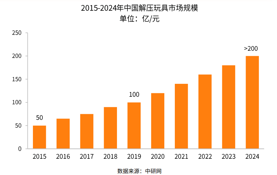 数据显示,仅解压玩具一项,全球市场规模已超过五十亿美元,中国市场更是突破200亿。