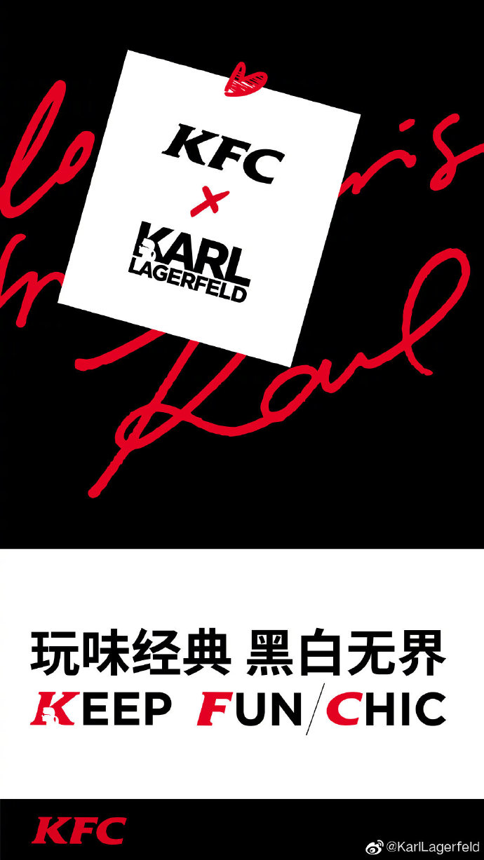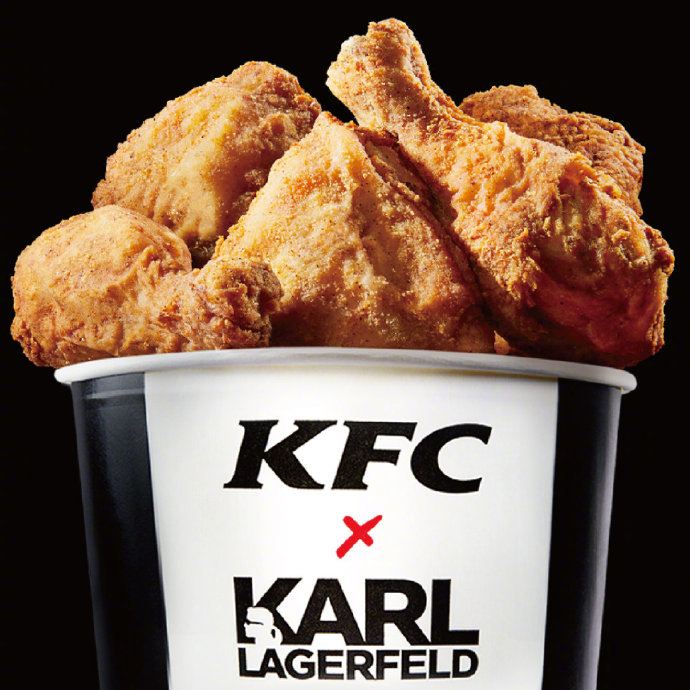 这一次,肯德基与法国巴黎的设计师品牌 Karl Lagerfeld(卡尔·拉格斐)合作,推出原味鸡半价桶和限量定制的双面桶帽、精美的炸鸡徽章,掀起一阵“炸鸡潮流”。