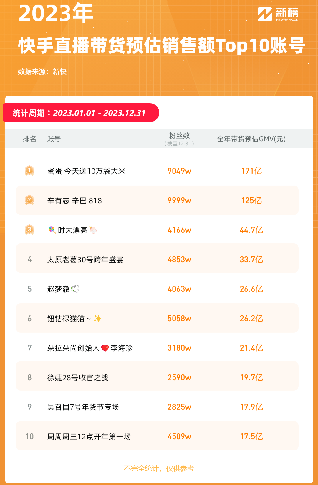 2023年个人贡献171亿GMV,与辛巴共同创下300亿业绩纪录;