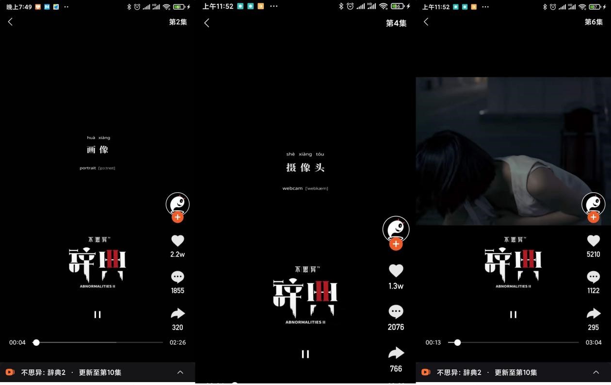 作为日活超过3亿的头部平台,1.5万人的播放量其实在快手上并不显眼,而且一个尴尬的事实是,越是口碑和质量较好的短剧,播放数据似乎越是不尽如人意。以《不思异:辞典2》为例,8月26日,兔狲文化制作的《不思异:辞典2》在快手平台首发,根据当前已经更新的剧集,“画像”的点赞量最高,为2.2w,评论有1855条,但是随后的数据一集不如一集。