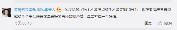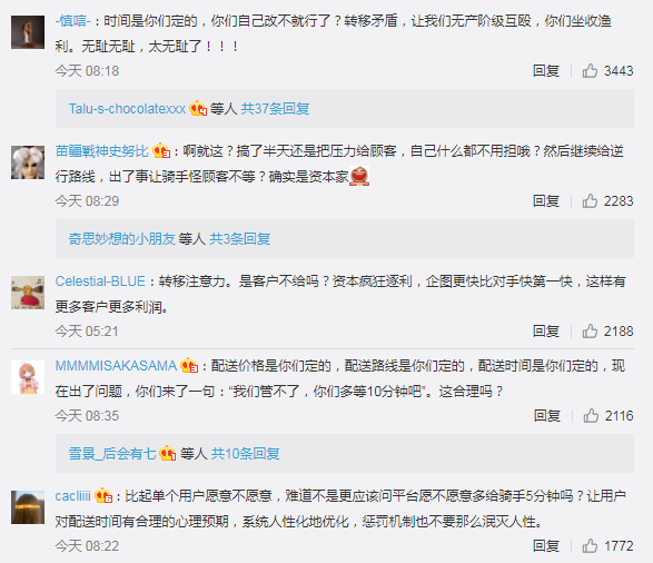 相比来看,饿了么这样的操作直接激起了网友们的反感,纷纷表示这是在甩锅。“多出来的5分钟不会用来遵守交通规则,而是用来多接一单,治标不治本”、“价格歧视完了,又来时间歧视”、“不介意≠愿意,被这个功能冒犯了”......网友们的质疑声直接将#饿了么将增加多等5分钟功能#送上热搜,阅读高达1.9亿。真是雪上又加霜。