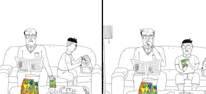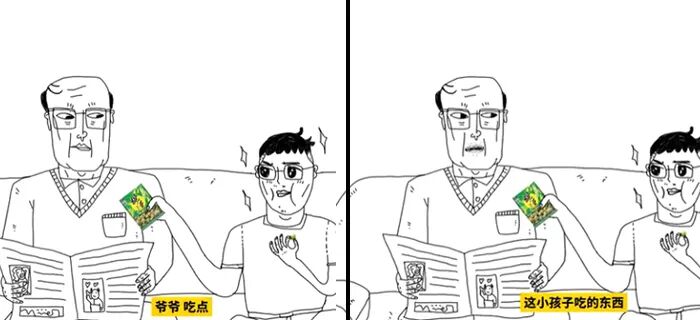 爷爷:这小孩子吃的东西,我才不吃结果,爷爷却趁孙子不备,以迅雷不及掩耳之势,将“挑豆”塞进嘴里。本以为,哼着小曲能够掩盖“心虚”,谁料一声嘎嘣脆如同惊雷,好不尴尬。不过,谁让他是爷爷,孙子又能说些什么呢。