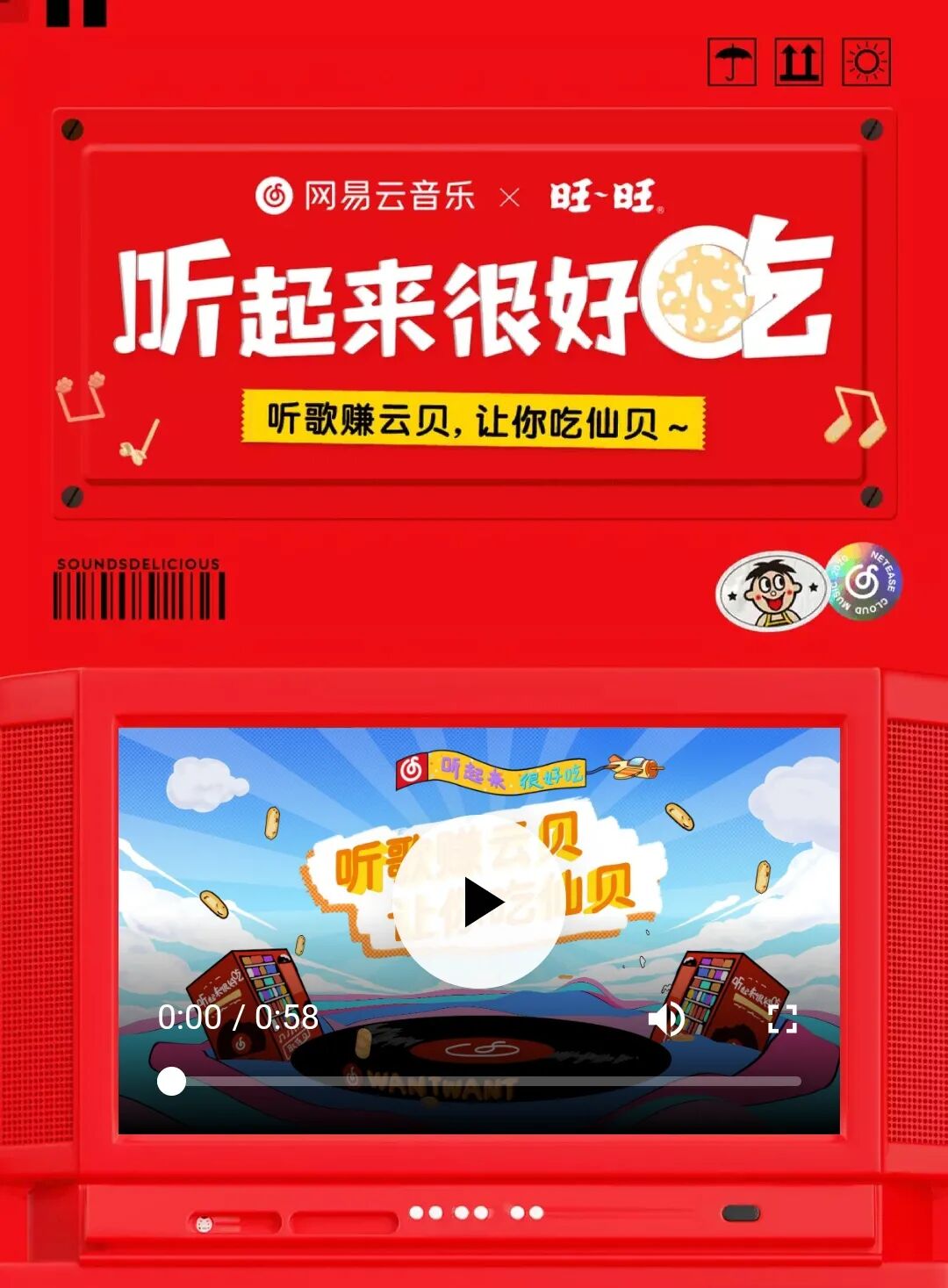 当然,为了活动增添活动趣味性与方便活动信息传播,网易云音乐和旺旺在9月5日上线《听起来很好吃》单曲。