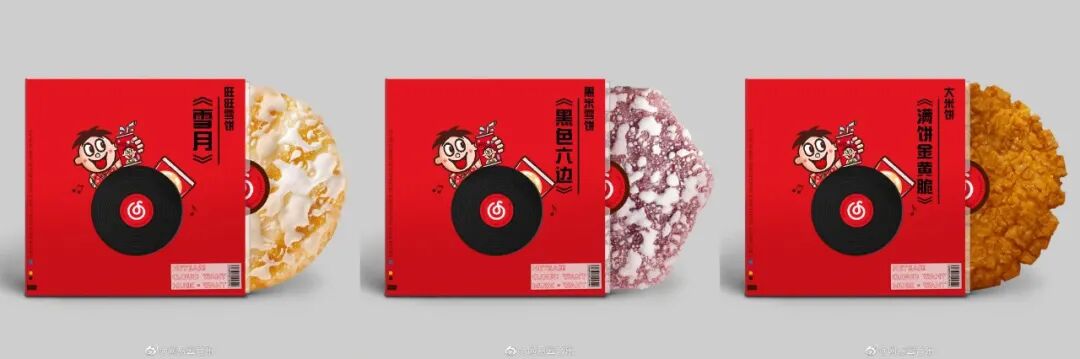 但是角色转换,音乐跨界食品,却是一件自带焦点的新鲜事。经典的旺旺雪饼、黑米雪饼、大米饼被做成类似于唱片的样子,这个看起来很动听的童年零食,吸引了不少网友的关注。