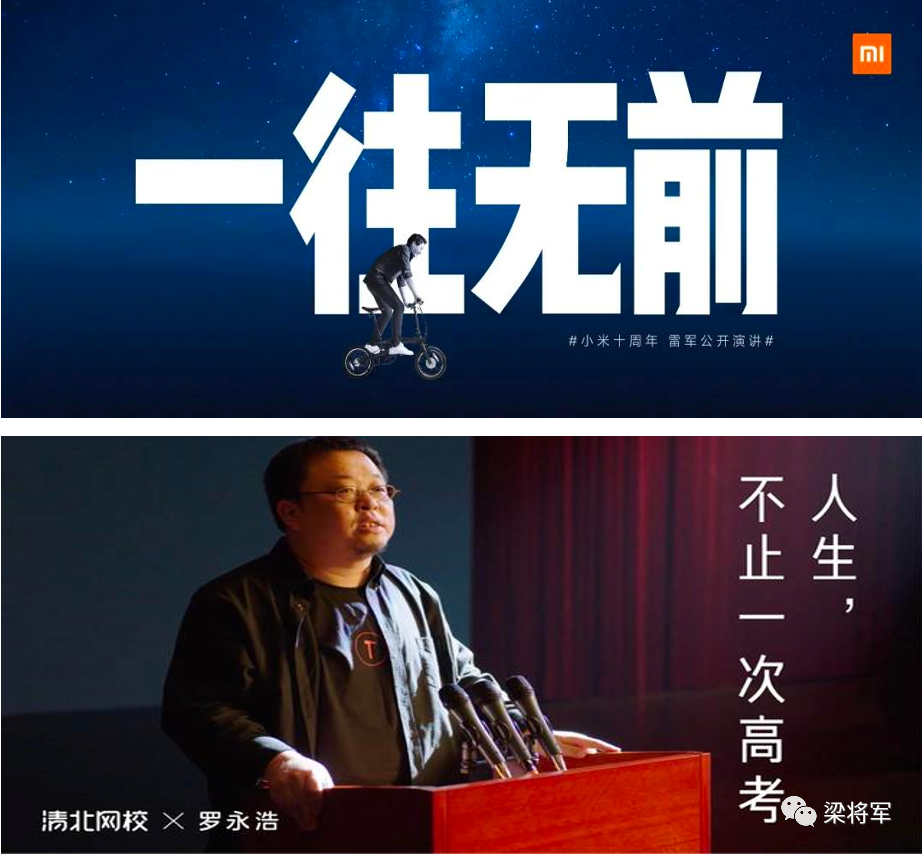 而今年,同样用“演讲”形式做广告的品牌还有两个,一个是小米10周年时期,雷军的演讲《一往无前》,一个是清北网校联手罗永浩的演讲《人生不止一次高考》。