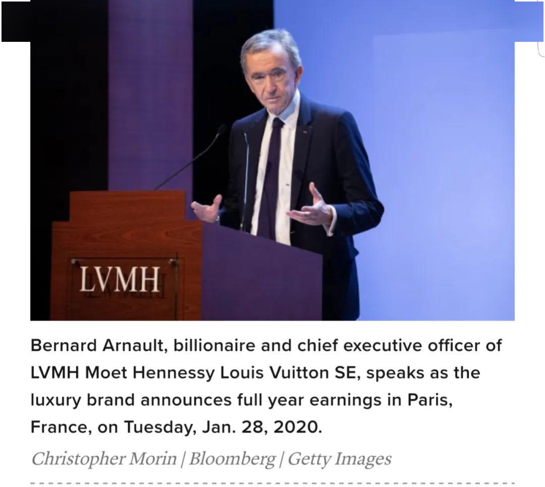 去年3月,《福布斯》发布2019年全球富豪榜时,LVMH集团董事会主席兼首席执行官Bernard Arnault(伯纳德·阿诺特)还排名第四,净资产为760亿美元,位于贝索斯、比尔·盖茨和沃伦·巴菲特之后。随着LVMH 集团一路高歌,在2019年7月、11月,阿诺特两次超过比尔·盖茨,成为全球第二大富豪,股价亦飙升了逾三分之一。