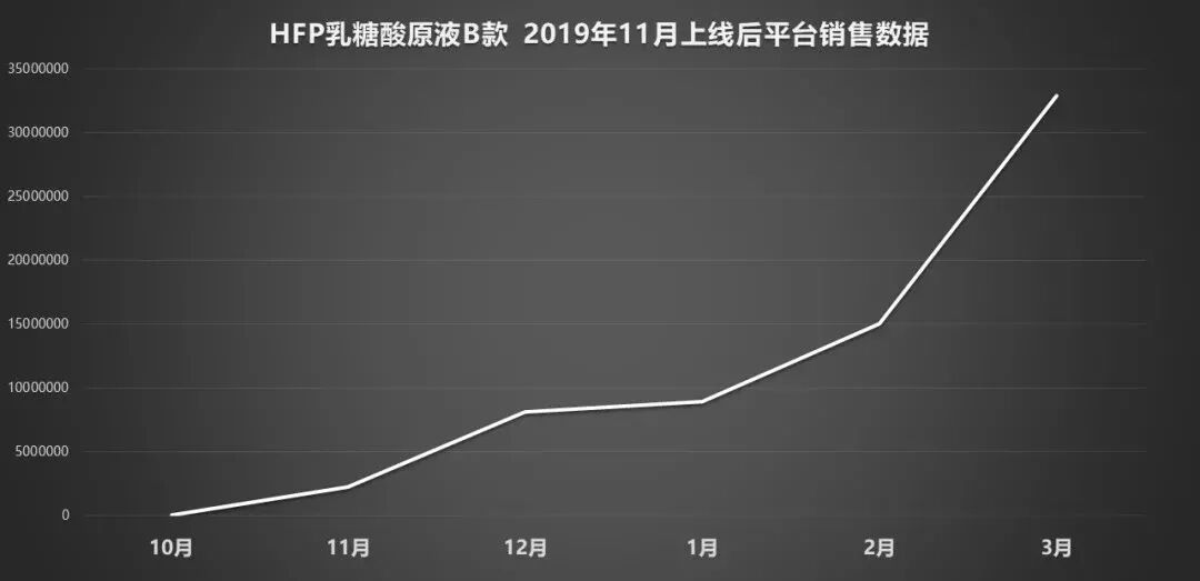 近期女子刀法会员,同时也是我们私域训练营导师之一的近场电商创始人刘玮冬,完整复盘了HFP如何通过不同阶段的营销投放,将一款名为乳糖酸原液的产品,反复打造成月销千万的超级爆款。