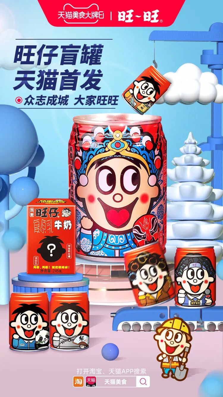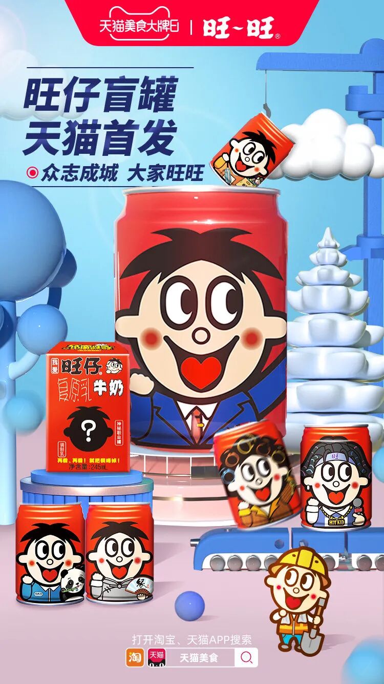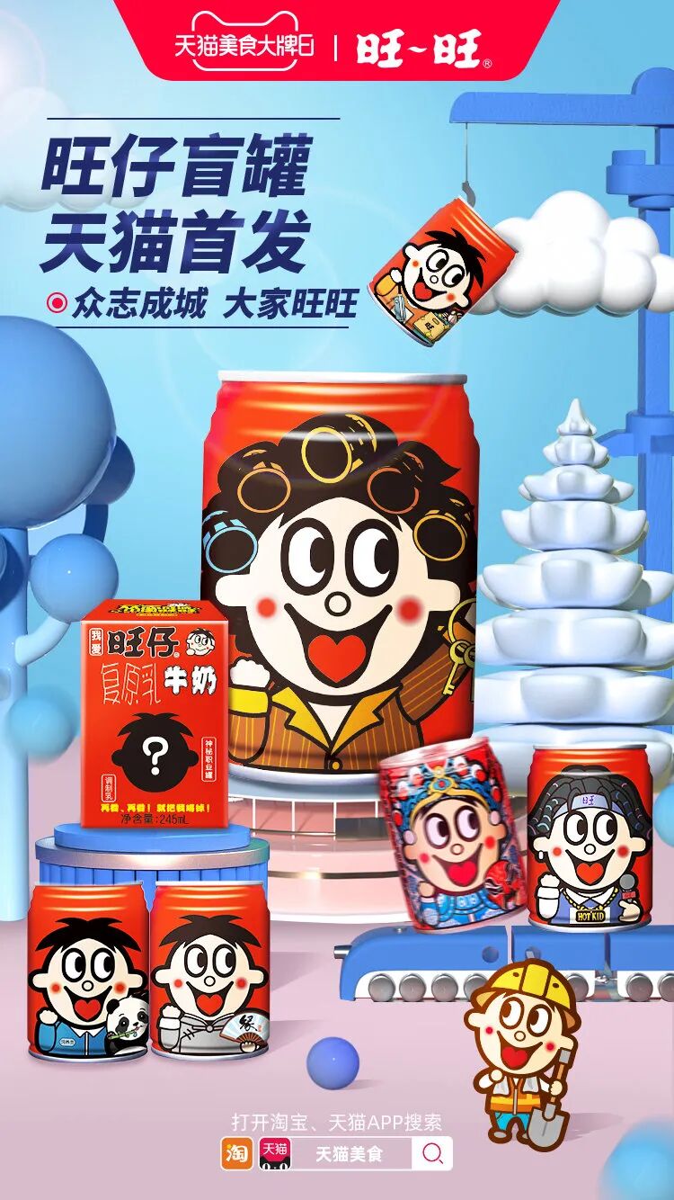 变装的设计能够为产品赋能,激发人们集齐全套的购买热情,同时,盲盒的玩法,也加强了旺仔牛奶的社交属性。