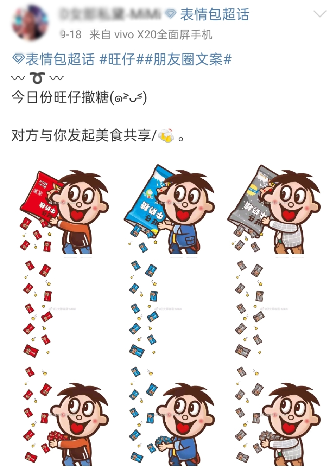 作为深受年轻人喜爱的IP,相比其它品牌来说,旺仔充满喜感的表情自带传播优势。