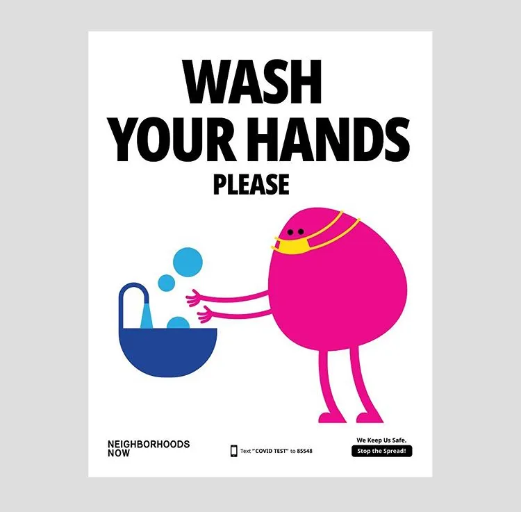 上图为国外防疫宣传海报,白底黑字加简单、扁平的插画,虽然很简单,但是很吸睛、很有趣,且清晰明了,与国内的防疫宣传海报还是很不一样的。