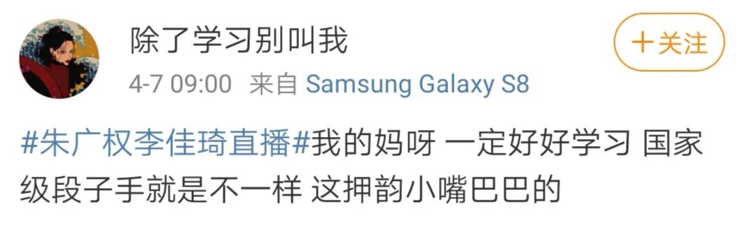 不过整场直播,最精彩的要数朱广权张口就来的押韵段子。看惯了李佳琦直播的网友,第一次发现,原来直播也可以这么有文化,都纷纷表示,要好好学习,长大也要当这样的国家级段子手。