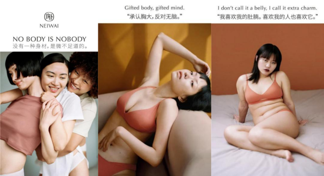 2020春夏大片——内外邀请了妈妈、奶奶、胖女孩等 6 位不同身材的女性来拍摄主题为「NO BODY IS NOBODY 」,即“没有一种身材,是微不足道的”。