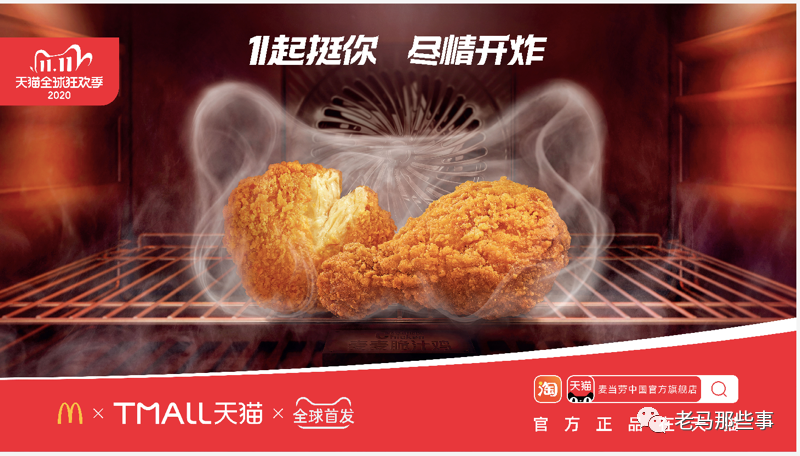 值得一提的是,麦当劳中国还通过淘宝、天猫、支付宝、饿了么、口碑等发布多场景、多品类的消费者权益活动。多端齐发,一方面加大了在阿里数字经济体内的用户渗透,方便获取新客;另一方面基于远场和近场电商全消费场景的覆盖,麦当劳中国可以更好地服务不同场景的消费需求,增加用户粘性和购买频次。“双人就选饿了么星选双人餐,多人就上天猫购买双11定制桶”!
