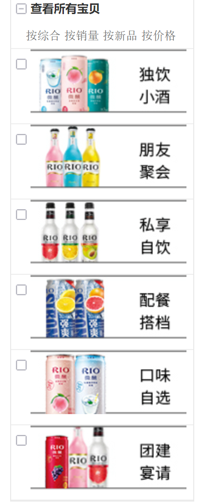 看一看今天的RIO,天猫旗舰店里完全是按场景细分的:3度|独饮小酒、3.8度|朋友聚会、5度|私享自饮、8度|配餐搭配,另外还有适合团建宴请的量贩装。