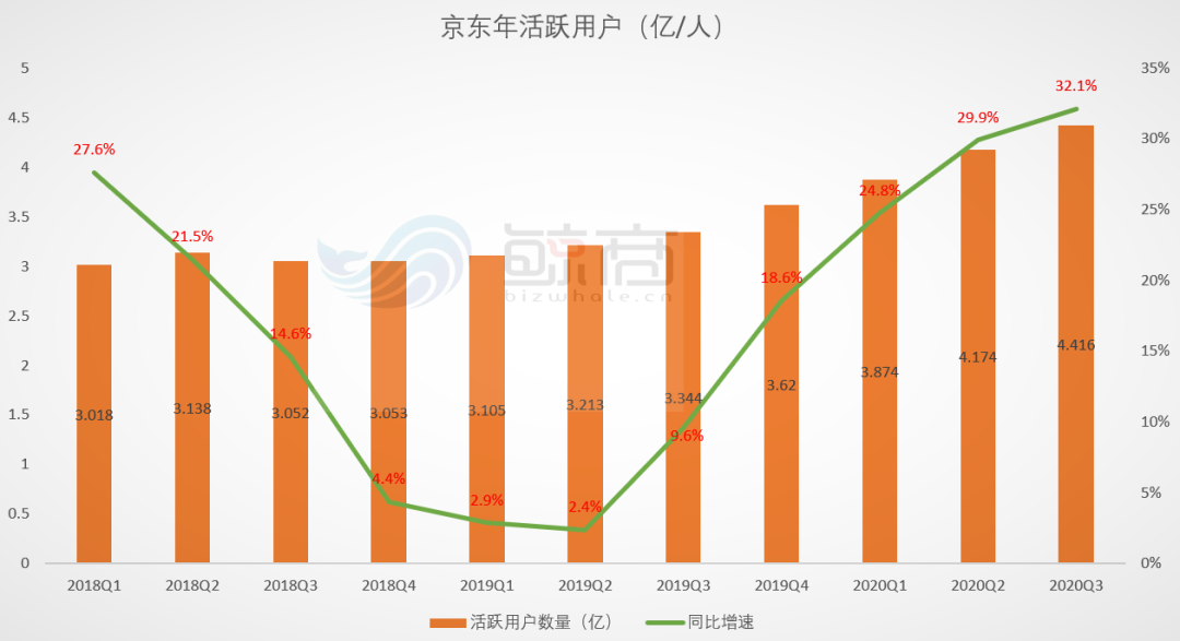 财报显示,京东过去12个月的活跃购买用户数,较上年同期的3.344亿增长32.1%,增至4.416亿,其中80%的新增用户来自下沉市场。而京喜对京东拉新、下沉的战略价值,早在今年3月份,鲸商就做了相应分析。