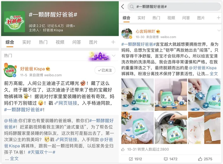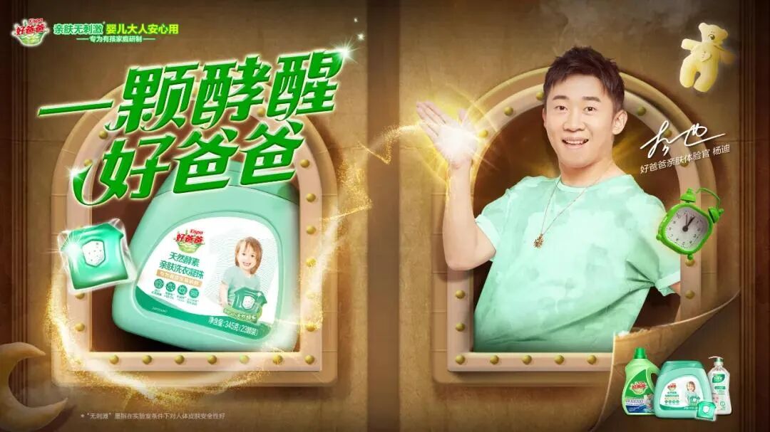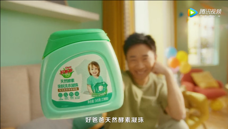 在传统观念里,女性一直担负着“家庭主妇”角色,所有和家庭消费相关的产品都指向女性。不过近年来家庭关系发生变化,中国男性参与家务的比例在逐步提高,中国男性承担家务事的比例为24.7%。中国洗涤用品领域的立白集团洞悉到了这一变化,大胆地转变营销策略,将旗下高端衣物洗护品牌命名为“好爸爸”,情感营销上拉近了与消费者的距离,满足消费者对于健康、安全的需求。在品牌定位之后,好爸爸基于对有孩家庭消费者的洗护需求的洞察,以“亲肤“为核心不断升级产品,满足消费者不断变化的消费需求。比如,2018从“洗衣液”到“洗衣露”,好爸爸颠覆了传统洗涤行业的产品形态,突破了自我边界,完成从手洗露到机洗露的全面革新。2019年推出好爸爸智净“浓縮+”亲肤机洗露,推陈出新地在洗衣露产品品线上做了一次革命性的升级。以本次营销中的天然酵素亲肤洗衣凝露为例,这款产品也就是“裤裤珠”,它的粉液分离技术,可以让酵素粉一直处于高活性沉睡状态 ,进行洗涤过程遇水后能被唤醒,并与浓缩液结合,激发8倍的洁净力,有效去除污渍,呵护孩子娇嫩肌肤。除了在产品层面不断升级外,在营销策略上,好爸爸也一直基于精准洞察,围绕亲肤和家庭亲子关系,展开差异化的营销策划,通过新颖独特的内容视角来吸引消费者的关注,传达产品的差异化,以及品牌的价值理念。并且,好爸爸的内容创意都建立在产品属性和目标群体痛点的把握上,将营销力和产品力进行完美融合。本次的双11营销,无论是内容创意还是传播层面,都承接产品力,通过产品力和营销力双驱动,增加了品牌价值力。此外,“好爸爸”始终围绕家庭亲子关系,在与消费者生活和关系密切的领域发力。通过《爸爸去哪儿》、《好爸爸·匠心研制》等一系列现象级综艺节目的曝光,不断加深“好爸爸”在消费者心中的品牌印象。以产品力驱动传播,形成有效的营销战机占领消费者心智。