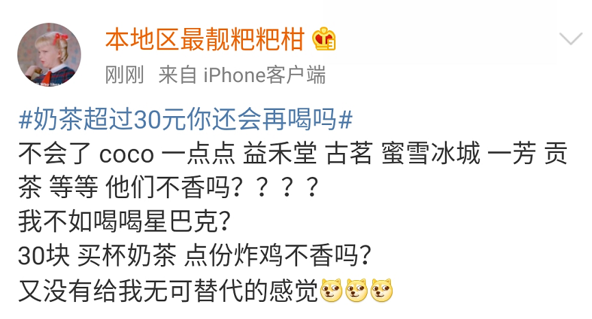 近日,#喜茶多款产品涨价2元#、#奶茶超过30元你还会喝吗#话题双双登上热搜。