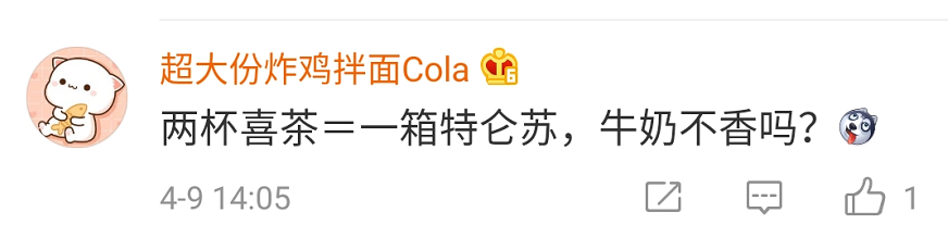 两杯喜茶=一箱特仑苏