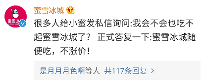 官博不仅在热搜评论下机智地表示蜜雪冰城不涨价。