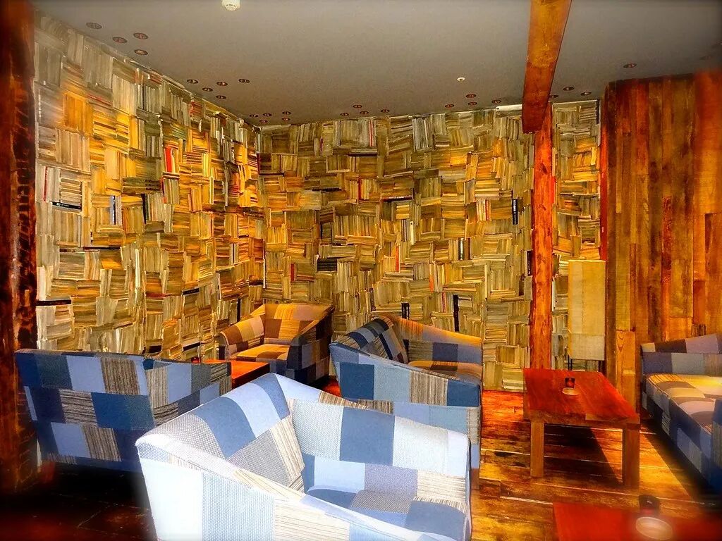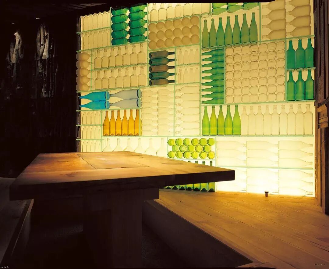 而餐厅、酒吧的设计就更随意了,不一定要有闪耀的灯球,吸引人的可以是酒瓶堆砌起来的装饰物、铁皮等金属元素也可以有温度。