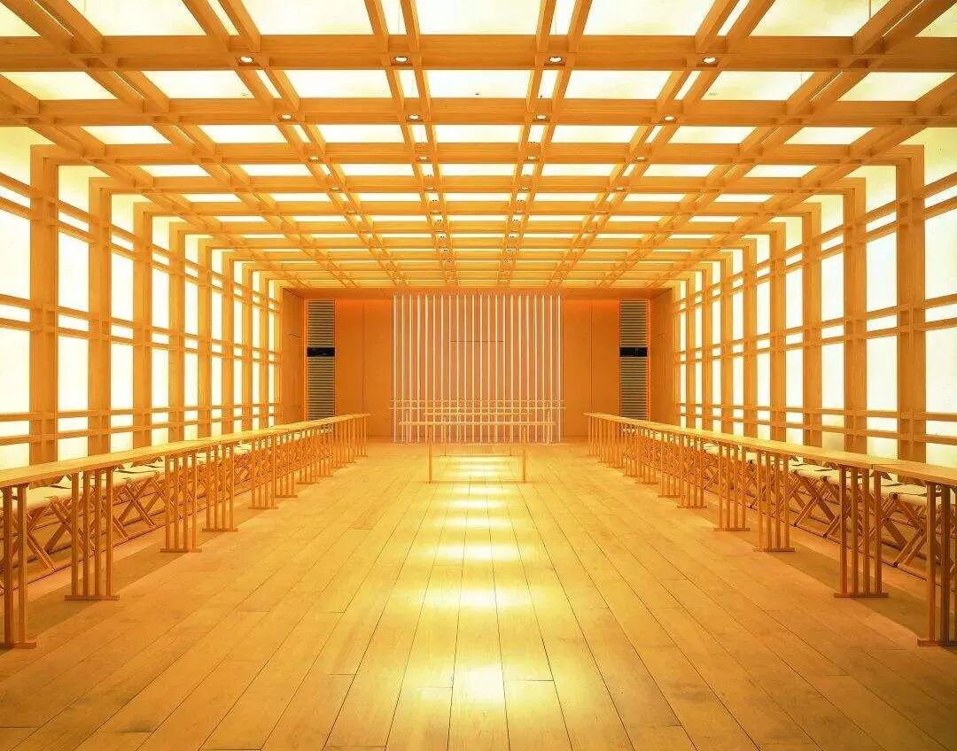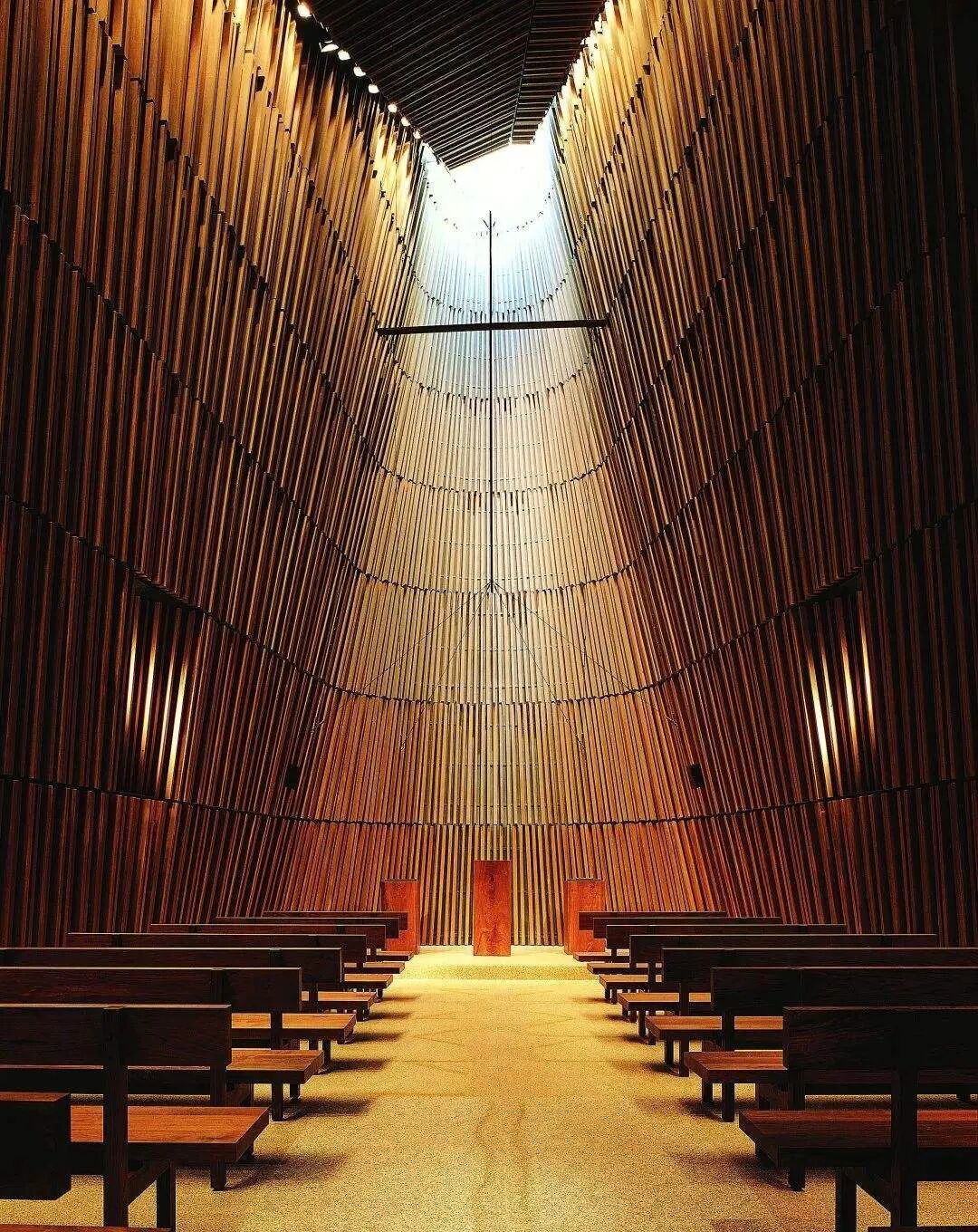 君悦大酒店的教堂是杉本贵志首次接触的项目类型,他特意去学习、参考了欧洲的教堂风格,后来他受到勒· 柯布西耶早期设计的一个教堂的影响,用了2年的时间,设计出一个除了必要的物件外,没有多余装饰的教堂,简洁却明亮,顶部自然光的设计带着一点神性。君悦酒店的神社与教堂的设计截然不同,光与影、明与暗相生交错,别样的美感。