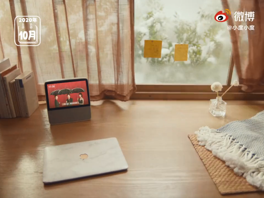 虽然桌子、窗户、视角没变,但是翻页的日历、窗外变化的风景、陈列的道具,以及小度播放的内容,都让人感受到四季的更迭,这样沉浸式的场景,更能让人直观感受到时间的流逝。