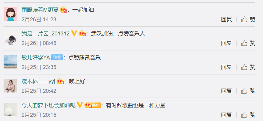依托于资源整合能力的优势,腾讯音乐人在短时间内号召了上千位原创音乐人响应,征集了上千首暖心原创作品。共同汇集成一幅“音乐人地图”,让每一位音乐人都能用自己的原创音乐以爱之名在不同角落为武汉、为中国祈福。