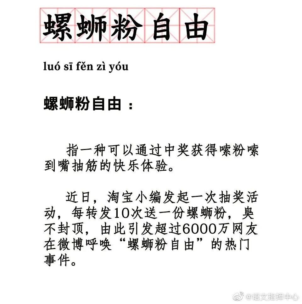 搞笑博主@语文指挥中心 还给这场大戏,精心打造了一个“臭烘烘”的词汇——“螺蛳粉自由”,引发螺蛳粉大军的集体共鸣。