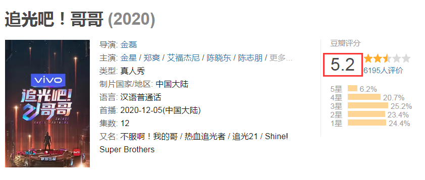人称“人间点炮王”的金星,在第一集几乎就将参赛选手的禁忌话题聊了个遍,而在郑爽现场吃瓜的参与下,喜提#郑爽说伍嘉成是来凑数的#、#金星郑爽太敢说了#、#陈志朋再唱青苹果乐园#、#杜淳主动跟印小天说话#、#金星冲付辛博叫“柏然”#、#陈志鹏把艾福杰尼认成工作人员#等一系列热搜,而杨幂对哥哥们的直白评论,更是让不少人质疑节目组在“搞事情”!回头来看,在“满身槽点男星们”和“毒舌组合”的双重加持下,《追光吧哥哥》引发现象级传播是不容置疑的事实,《追光吧哥哥》俨然成为当下的综艺大热点。当然,在这样的现象级热度下,其幕后的最大推手——优酷,也是实现了收视率和话题度的双赢局面。开播首日话题量直破8亿,远甩同档综艺,连续三天霸占综艺节目排行榜榜首;仅播出三集,节目收视率与讨论度便持续飙升,以接连霸榜微博热搜为起始,持续破圈现象级综艺。《追光吧哥哥》成为了2020年优酷少有的话题综艺,而在长视频三国杀中明显掉队的优酷终于在年终为自己找到了一点存在感。早年古永锵时期的优酷曾是中国长视频领域的领军者,但归属阿里后的优酷却在长视频的道路上走得格外坎坷。 QuestMobile数据发布的《2020半年度中国移动互联网实力价值榜》显示,6月爱奇艺APP月活为5.08亿,腾讯视频APP月活4.83亿,而优酷APP月活仅为2.27亿。爱奇艺Q3会员数达1.048亿 ,腾讯视频达1.2亿,优酷尚未公布数字。在三国杀的战局中,优酷虽然仍然勉强应战,但早已被甩的太远。2020年芒果TV凭借《乘风破浪的姐姐》用户增长迅速,据QuestMobile数据,节目开播前,芒果TV5月11日-6月7日周活跃规模均值为1.12亿;而在节目开播后,6月8日-9月6日周活跃用户规模均值为1.40亿。良好的拉新效果也在业绩中有所体现,芒果超媒三季报显示,公司前三季实现营收94.71亿元,同比增长15.05%;归属净利润16.12亿元,同比增长65.39%。芒果TV威胁的不仅仅是优酷的长视频铁三角地位,与此同时也威胁着它在金主心目中的地位。12月15日,芒果超媒控股股东向阿里创投转让5.26%股份获湖南省文资委批复,阿里创投成为芒果超媒第二大股东。当一个金主爸爸旗下有两个品类一致的产品,其中一个赚钱,一个不赚钱,究竟谁会得宠呢?由此可见,2021年的优酷也注定危机四伏。优酷之所以落到这种局面,内容保守,宣发缺位是重要原因。与爆款频出的腾讯视频和爱奇艺相比,优酷虽然也有精品内容,但产生爆款的数量和声量远低于前者。以各大长视频必备的101系偶像选秀综艺为例,爱奇艺的《偶像练习生》和《青春有你2》,以及腾讯视频的《创造101》都曾经先后创造现象级传播效果,捧红全网知名偶像。反观优酷《以团之名》基本上毫无声量,凭借话题导师郭敬明《少年之名》曾短暂成为互联网讨论事件,但这个“讨论”非常短暂,出道团sky官方微博目前粉丝甚至不足30万,远低于同期出道的爱奇艺女团THE9。优酷迫切地需要一部爆款作品在大众视野中寻找到存在感,《追光吧哥哥》或许是这个契机。想过《乘风破浪的姐姐》会被其它节目拿去借鉴,只是没想到会这么快。导演金磊在此前的采访中并不避讳大众对于“男版浪姐”的联想,坦言节目启发于“姐姐”,已经做好了被比较的准备。从首期收视率来看,“哥哥”的确也受到了许多关注。CSM59城首播收视破2%,全国综艺同时段排名第一,相关话题也接连不断登上微博热搜。只是从口碑来看,目前“哥哥”与“姐姐”还相差甚远。“有流量,没口碑”是这档综艺最大的问题。三期播后,节目的豆瓣评分仅有5.2分,除演艺人自身的陈年旧事、娱乐话题、舞台表演被网友拿来八卦戏谑之外,还没有看到选秀综艺常见的安利与打投。
