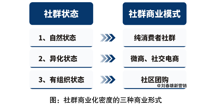 社群商业化的密度,大致表现为三种形式: