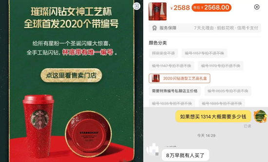 不过很显然今年的圣诞杯很不服气,于是星巴克2020款圣诞杯——璀璨闪钻女神工艺杯被炒到了8万一个的天价,再次引发全网热议。不止如此,这几天“星巴克气氛组”的热梗也让星巴克挂上了热搜,用一波气氛组招募活动打了一场漂亮的营销战。从现象级猫爪杯到8万一个的圣诞杯,再到气氛组热梗营销......星巴克仿佛有着网红一般的体质。