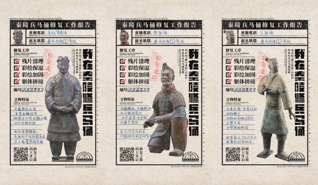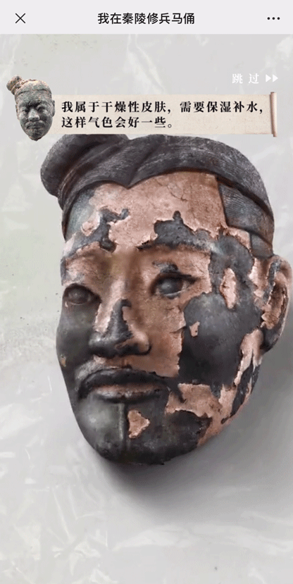 H5主要包含了“残片清理、彩绘保湿、彩绘加固、躯体拼接”四大修复步骤,让大家在寓教于乐中对兵马俑修复能够有一个完整、准确的认知。