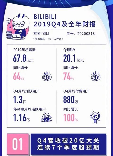 纵观2019年,B站通过丰富多元的优质内容、健康活跃的社区生态和积极的用户增长策略,在更广泛的层面“实力出圈”。在第四季度,B站月均活跃用户再创新高达1.3亿,同比增长40%。