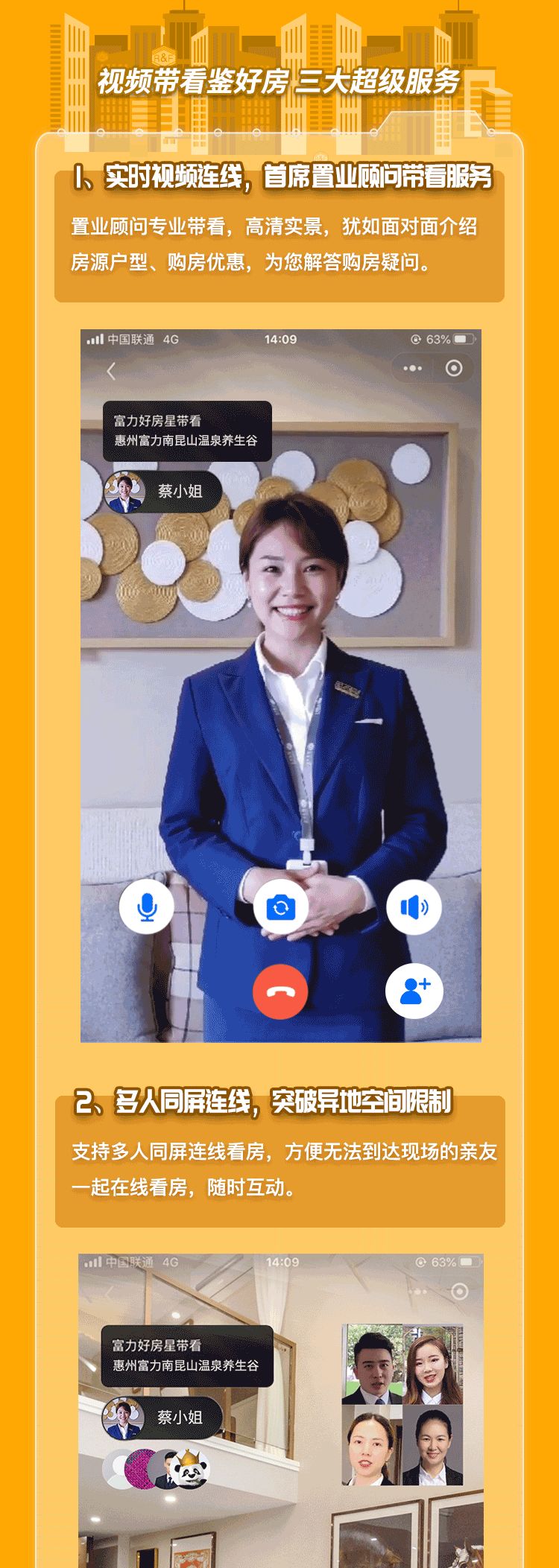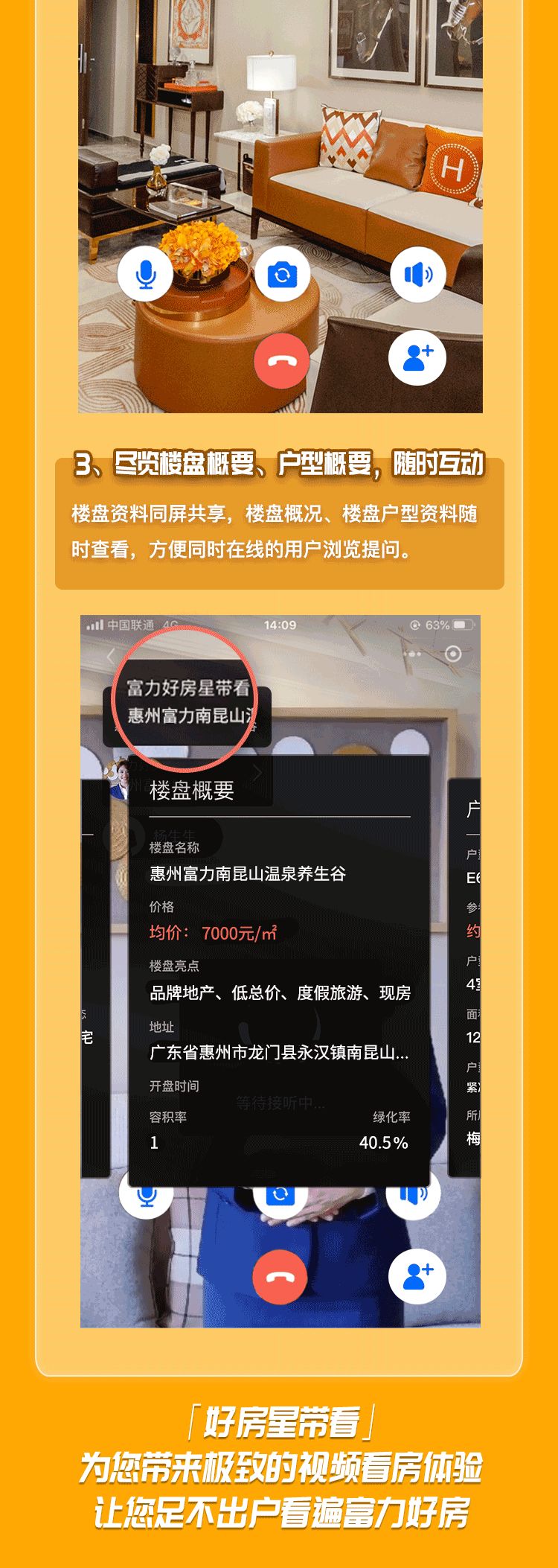就拿“好房星带看”产品来说,不仅涵盖实时视频连线,首席置业顾问带看,多人同屏连线,突破异地空间以及尽揽楼盘、户型概要,随时互动三大超级服务;“好房平台”更实现了VR看房、视频看房,视频带看,客户留资,在线咨询,活动报名,客户推荐,在线认购及置业顾问互动等行业领先的功能与服务;还网聚了全国32个地区,210个楼盘、22,000多套优质房源,依托专业置业顾问即时互动,带给消费者极致的看房体验,节省时间和精力,提升效率。