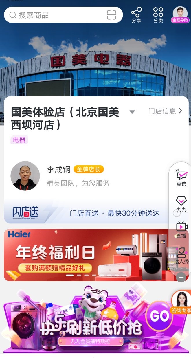 这套服务的推出,也与国美升级进入“家·生活”战略第二阶段,打造以线上平台为主,线上线下全面发展的双平台战略息息相关。去年,其线上平台APP内增设“门店频道”,依托线下门店将全国近3000家门店实现线上平移,实现“一店一页”。使得每个门店通过网格化管理,服务周边3-5公里用户,并以“真人即时在线解答+商品快速送达+到店、到家服务”的全链条服务模式,成为离用户更近、更可信赖的顾问。用户可随时在线与最近门店的专业导购及时交流,也可由用户预约到店或上门进行面对面沟通。