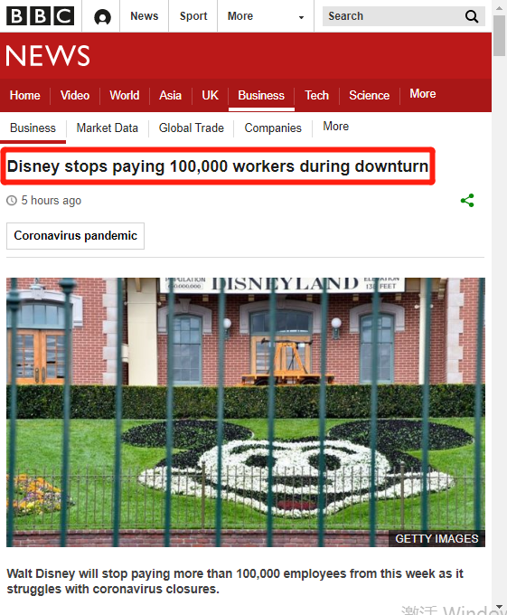 因受新冠疫情的影响,华特迪士尼公司将从本周开始停止向10万余名员工支付薪水。此举能为迪士尼每月节省近5亿美元(约合人民币35亿元)的开支,以缓解疫情以来的经济压力。