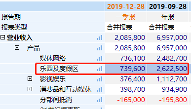 乐园和度假区是迪士尼的主要收入来源:迪士尼在2019财年年报中,乐园及度假区板块创造了超过260亿美元的销售额,占公司总收入的37%。