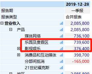 从营收来看,2020年一季度,影视娱乐贡献了37.6亿美元的收入,占公司营收比18%。去年更是盈利27亿美元。