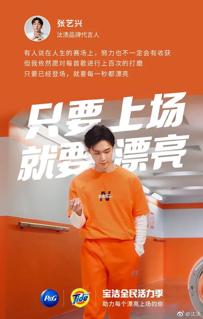 这其中有4月15日新官宣的汰渍品牌代言人张艺兴、佳洁士炫白笑容官程潇、舒肤佳品牌活力代言人宋威龙,以及宝洁原有代言人家族成员:海飞丝、舒肤佳品牌全线代言人王一博和飘柔全球代言人王俊凯,以及宝洁全球好物推荐官薇娅。