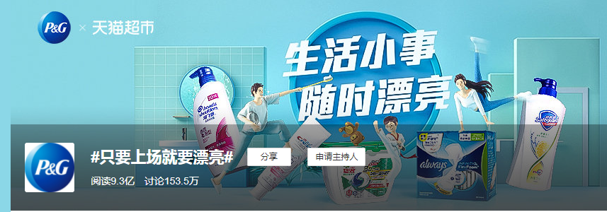 在话题升级上,宝洁还利用各个子品牌代言人,借势明星话题升级后的话题聚合功能,将不同粉丝类型统统融合在超级话题下,增强了内容的沉浸度。